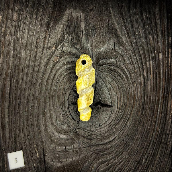 Wykonany z naturalnego poroża jelenia — pochodzącego z corocznych zrzutów — i ozdobiony spiralnym motywem. Poroże jelenia symbolizuje cykliczność życia, odradzanie się i siłę natury. W wielu kulturach regularne odnawianie poroża u jeleni wiązano z potencją, regeneracją i wzrostem duchowym. (Kopaliński: „poroże, które co roku odrasta … wyobraża rosnącą potencję płciową, odradzanie się, duchowego”.)